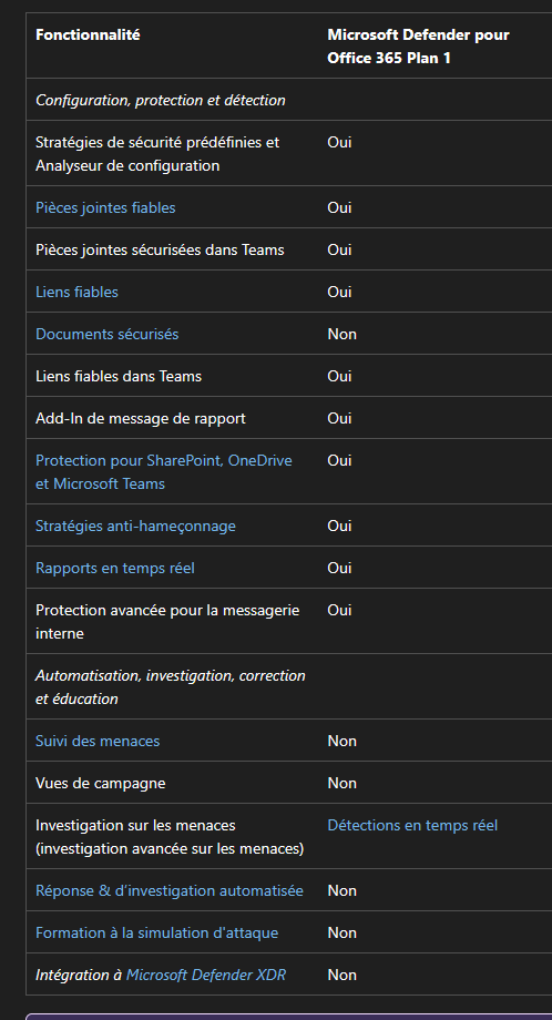 Posté(e) il y a 11 heures11 h Bonjour à toutes et à tous,Dans ma boite, on a juste un antivirus de base pour les PC. J'ai proposé plusieurs solution de sécurisation budgété. J'avais proposé VD secure en antispam et un XDR/EDR. Afin d’accroitre la sécurité du parc informatique. Le coût étant lourd, cela a été refusé. J'ai enfin trouvé un compromis avec ma direction. Nous utilisions Micosoft Business Basic (pour les tech sans ordi) et Standard (pour les personnes travaillant sur un pc). J'ai vu que Microsoft propose Defender pour Office 365. J'ai donc proposé de proposé ceux qui utilise la licence Standard, de mettre une couche de protection -->Vous en pensez quoi?